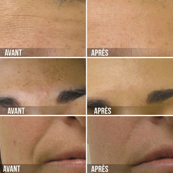 Résultat : une peau plus lisse, repulpée, éclatante, avec un effet bonne mine et un aspect visiblement rajeuni dès la première séance.